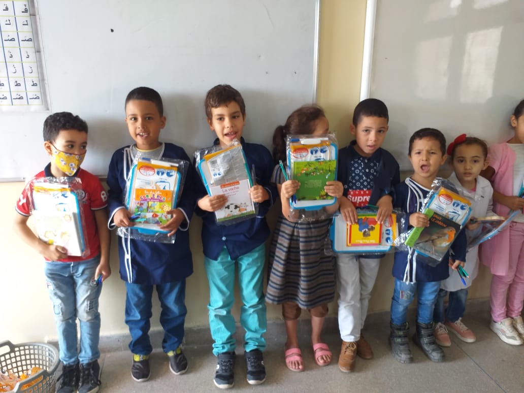 Des élèves de l'école Ibn Sina et leurs ardoises.